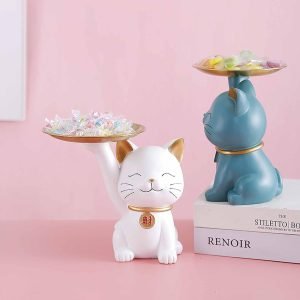 Decor Candy Dishes Decorative, Entryway Table Key Storage Tray, Cute Cat Resin Figurine, Gift for Friends, Colleagues, Family,White