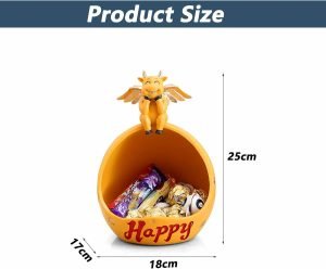 Decor Decorative Bowl for Keys Entryway, Home Living Room Candy Bowl, Creative Cow Resin Figurine, Storage Box,Blue