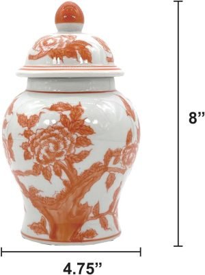 Decor 8″ Ceramic Ginger Jar with Lid – Tea Storage, Decorative, Home Decor Jar (Orange & White)