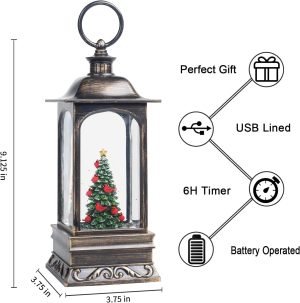 Decor Christmas Snow Globes, Cardinal Christmas Tree Water Lantern, USB Powered & Battery, Holiday Decorations Gifts for Family, Children or Friends