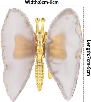 Decor 2pcs Agate Slice Butterfly Decorations, Golden Flying Butterfly with Colorful Stone Wings for Home Office Table Desktop Decor, Grey & Black