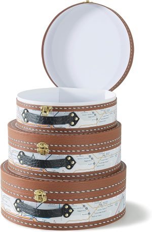 Decor Round-Edged Cardboard Decorative Storage Boxes with Lids: Set of 3 Metro Route Themed Gifts, Mini Vintage Suitcases, Transit Map Decorated Boxes, Scrapbook Storage Boxes, Prop Storage Boxes