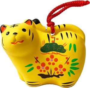 Decor Cute Yellow Tiger of Japanese Zodiac Pottery Room Ornament. for Happy New Year! Bell Design
