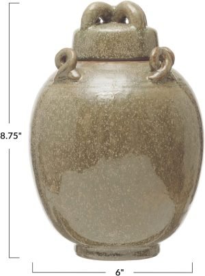 Decor 8″ Ceramic Ginger Jar with Lid – Tea Storage, Decorative, Home Decor Jar (Orange & White)